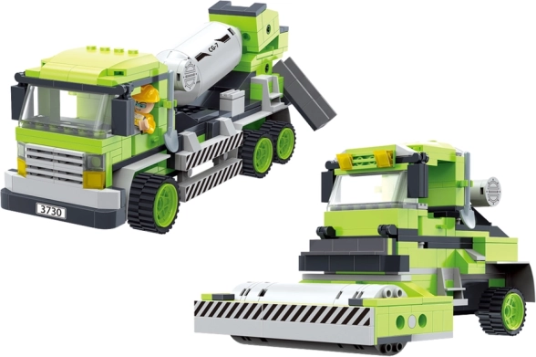 Kocke su izrađene od izdržljive plastike. Uživaju u velikom broju pokretnih dijelova i mogućnosti samostalnog stvaranja. Sljedeća faza je igra, u kojoj iz gotovih vozila stvarate vlastito gradilište. Mikser s rotirajućim "bubnjem", otvarajućim vratima ili vozilo s rotirajućim valjkom zadržat će djetetovu pažnju satima!