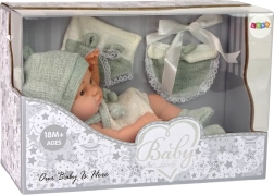Lutka slatka beba savršena je igračka za male njegovateljice i njegovatelje. Omogućuje djeci razvijanje osjećaja odgovornosti i empatije kroz igru punu zabave. Odjevena u slatki džemperić s usklađenom kapicom u jarko zelenoj boji s čipkastim detaljima. Ima pokretne udove i glavu, što omogućuje bebi da bude u sjedećem ili ležećem položaju. Odjeća se lako mijenja, što dodaje raznolikost i kreativnost u igri.