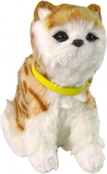 Ovaj realistični plišani mačić u bijelo-žućkastoj boji sa smeđim prugama i žutom odvojivom ogrlicom očarat će svako dijete. Nakon maženja po glavi oživi – nježno mjauče i slatko pomiče glavom i repom. Mekane i nježne dlačice osigurat će da postane omiljeni ljubimac za krevet kao i za putovanja.