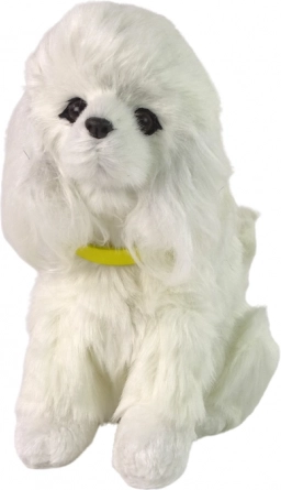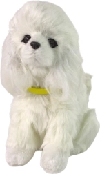 Baršunaste bijele dlačice iznimno su ugodne na dodir, tamne oči sa smeđim obrubom daju realističan dojam, a žuta, lako odvojiva ogrlica naglašava slatki stil. Igračka je prikladna od 3 godine, ne sadrži oštre dijelove i udovoljava sigurnosnim normama.