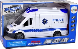 Policijsko vozilo sa sirenom i plavim rotacijskim svjetlom odličan je izbor za svakog mladog vozača u uniformiranoj službi. Auto je u potpunosti izrađen od plastike, u bojama prikladnim za policijska vozila. Vozilo ima napeta prednja kola zahvaljujući kojima se kreće samostalno. Zvučni i svjetlosni efekti aktiviraju se pomoću tipki na krovu.