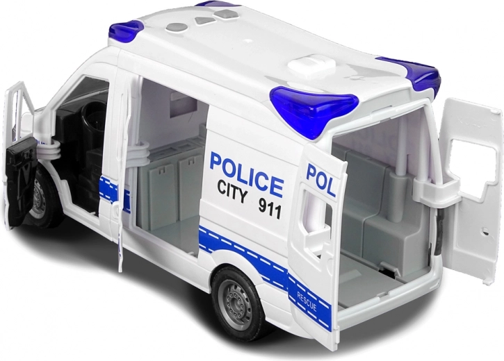 Igračka policijski auto izgleda kao pravi. Pri dizajnu su uzeti u obzir najvažniji dijelovi vozila, uz vrlo sigurnu izradu. Igračka je prikladna za djecu od 3 godine.