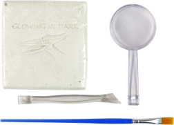 Uz pomoć priloženih alata i jednostavnih uputa vaše će dijete otkriti fosile kostura dinosaura koji svijetli u mraku. Nakon čišćenja i spajanja pojedinih dijelova nastat će kostur dinosaura Pteranodona.