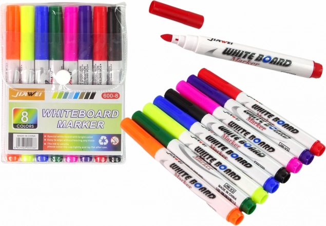 Set sadrži 8 zasićenih boja koje potiču dječju kreativnost i vašu prezentaciju u školi ili uredu. Flomasteri se lako brišu s bijelih ploča i glatkih materijala, pa je čišćenje pitanje trenutka.