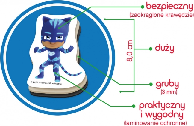 Set od 22 magneta PJ MASKS za djecu od 3 godine. Izdržljivi, sigurni i šareni magneti s omiljenim junacima, idealni za hladnjak i magnetske ploče.