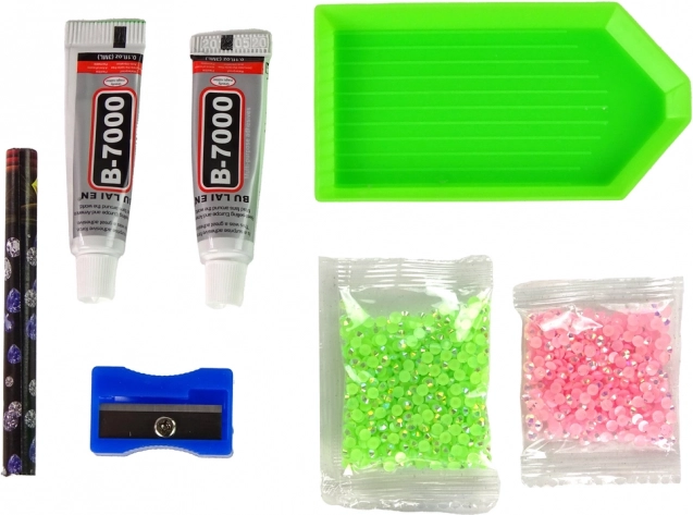 Set sadrži figuricu jelena, 2 boje kristalića, 2× ljepilo, pladanj, voštani aplikator i šiljilo – dovoljno je otvoriti i početi stvarati.