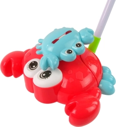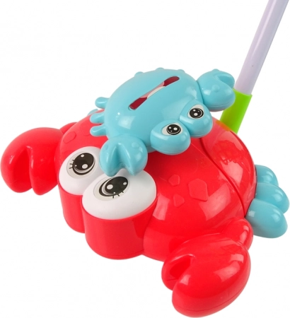 Interaktivna igračka za guranje rak donosi djeci ne samo radost, već i stimulira njihov sluh i vid. Kada djeca guraju raka naprijed, čuju ugodan zvuk zvončića. Veliki crveni rak s malim plavim rakom na vrhu, koji se okreće pri svakom pokretu naprijed.