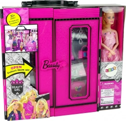 Uđite u svijet mode s ovom garderobom, koja je namijenjena djevojčicama koje vole igrati se s lutkama, presvlačiti ih i stilizirati. Garderoba je dizajnirana u svijetloružičastoj boji s dvostrukim vratima i staklenim panelima, kroz koje možete gledati unutra.