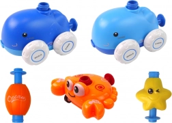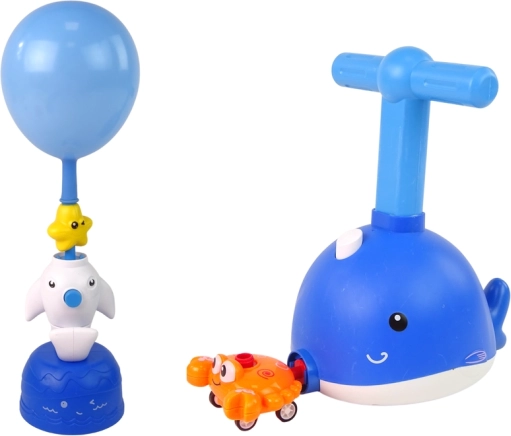 Najprije odaberite balon prema boji i postavite ga na auto. Zatim spojite auto s lansirnim kompletom u obliku delfina i polugom napušite balon. Kada je balon napuhan, pritisnite gumb GO na lansirnom kompletu i auto će krenuti naprijed. Promatrajte kojom brzinom prolazi prostorijom. Na izbor su auti u obliku morskih životinja, poput delfina ili raka.