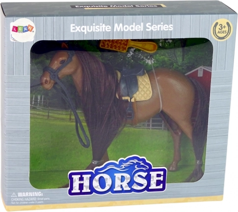 Figurica konja osmišljena je tako da vjerno prikazuje stvarne detalje, uključujući grivu, sedlo i ormu, što omogućuje razigranu pripremu za šetnje i natjecanja.