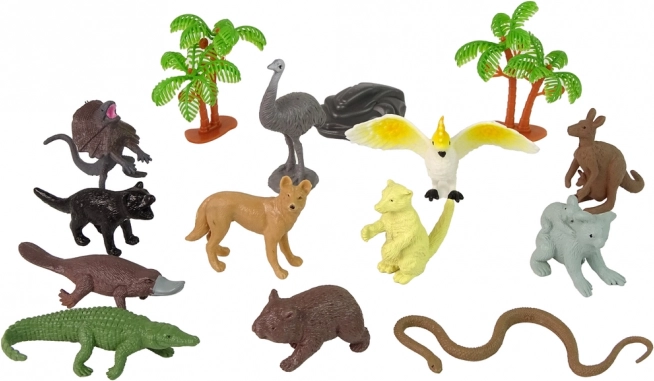 U setu se nalaze klokan, koala, krokodil, emu, papiga, zmija, kljunozub, vombat, tasmanski đavao, gušter, pustinjska lisica, 2 stabla i stijena – sve za stvaranje vlastitog australijskog svijeta.