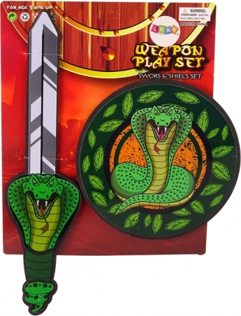 Ovaj viteški set od kvalitetne EVA pjene odličan je dodatak kostimu viteza ili kralja. Zahvaljujući mekom materijalu igra je sigurna i udobna, dok upečatljiv motiv zelene zmije na maču i štitu potiče dječju maštu i igru s pričama.