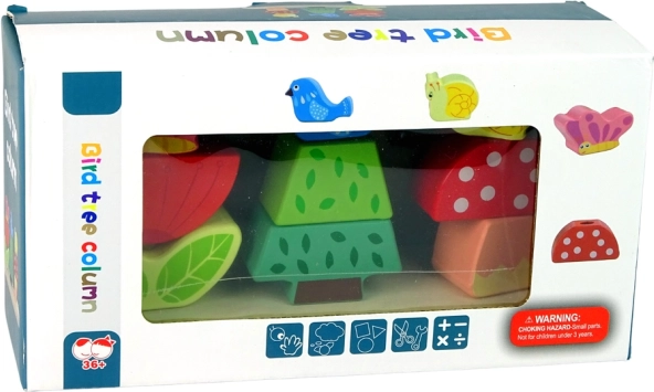 Ova drvena slagalica sastoji se od čvrste baze s tri kolčića na koje djeca stavljaju drvene dijelove u proizvoljnom redoslijedu tako da se međusobno uklapaju. Dijelovi prikazuju biljke, leptire i ptice – zadatak je ispravno ih povezati s njihovim prirodnim okruženjem, primjerice leptira s cvijetom ili pticu sa stablom. Slagalica tako potiče maštu i znanje o prirodi.