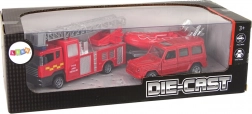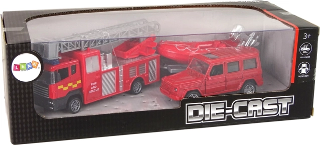 Vatrogasno vozilo s rastezljivim ljestvama vjerna je kopija stvarnog vozila, a zahvaljujući frikcijskom pogonu dinamično se kreće po podlozi. Auto s otvarajućim vratima dodatno je opremljen motornim pogonom.