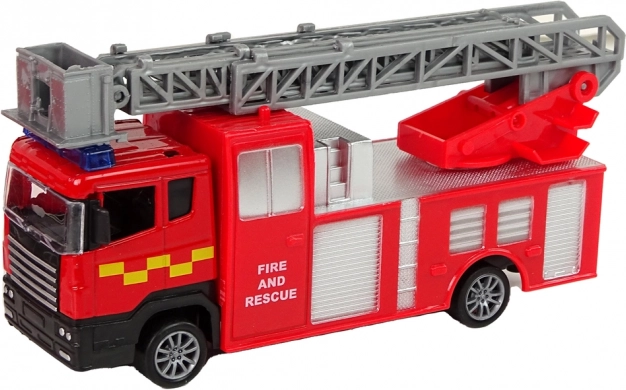 Vozilo s proširivim ljestvama dosega 32 cm koje izgleda kao autentično vatrogasno vozilo. Frikcijski pogon pojačava dojam realistične igre.