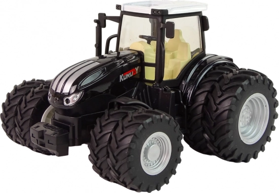 Ovaj crni daljinski upravljani traktor donosi djeci autentičan doživljaj farme. Kabina je vjerno izrađena prema stvarnom stroju, veliki gumeni kotači savladavaju glatke površine i kućne prepreke, a čvrsta metalna konstrukcija povećava otpornost pri svakodnevnoj igri. Prednje LED osvjetljenje svijetli tijekom vožnje i dodaje dozu realizma igri.