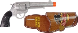 Lagan revolver (23 × 10 × 4 cm) udobno leži u ruci, a zahvaljujući futroli na remenu uvijek je pri ruci. Siguran narančasti vrh jasno pokazuje da je riječ o igrački.