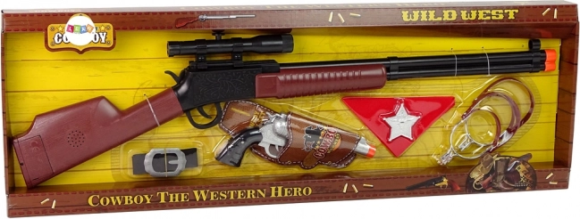 Pripremite se za avanturu na Divljem zapadu. Dječji kaubojski set pretvara male junake u šerifa koji brine o redu. Velika puška s nišanima i kompaktni revolver proizvode realistične zvukove pucnja, pa je igra još zabavnija – a pritom sigurna zahvaljujući izraženom narančastom završetku i laganoj konstrukciji od izdržljive plastike.