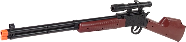 Impozantna puška duljine 80 cm s nišanima pomaže vježbati koncentraciju i maštu. Nakon pritiska na okidač čuje se zvuk pucnja za još veću autentičnost.