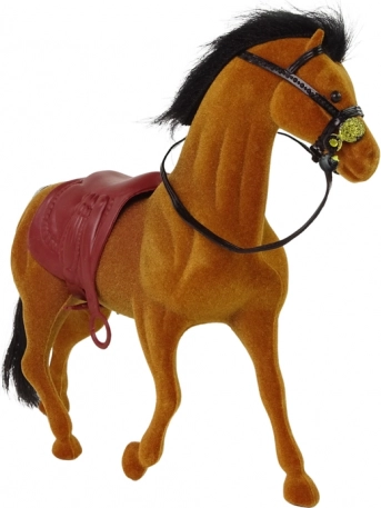 Ova smeđa figurica konja oduševit će realističnim detaljima, mekom baršunastom površinom i upadljivim crvenim sedlom. Sjajan je dodatak dječjoj farmi i zbirci životinja, potiče kreativnu igru i razvoj mašte.