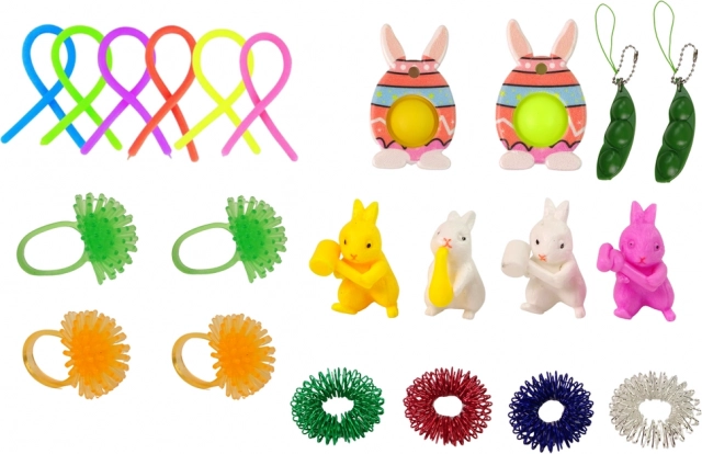 Otkrijte zabavu za svaki dan i blagdane – uskrsni set fidget igračaka donosi raznolike aktivnosti za oslobađanje napetosti i razvoj vještina. Zahvaljujući različitim teksturama i funkcijama djeca vježbaju prstiće, poboljšavaju koncentraciju i istodobno se odlično zabavljaju. Idealno kao poklon u uskrsnoj košarici, za proslave i za putovanja.