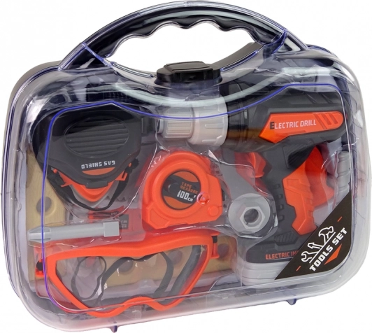 Cijeli set alata smješten je u praktičnoj kutiji. Sadrži plastične alate, uključujući bušilicu na baterije, koja se okreće i pušta realistične zvukove pritiskom na gumb. Za sigurnost tijekom igre, dio seta su zaštitne naočale i maska. Također ćete pronaći mali metar i pilu za precizan rad. Svi su dijelovi dizajnirani tako da pomažu djeci učiti i vježbati svoje manuelne vještine.