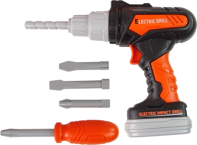 Električna bušilica na baterije s rotirajućim svrdlom dodaje dinamiku igri. Sjajan dodatak za svaki dječji set alata!