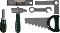 Među alatima su čekić, pile, odvijač i ostalo, što omogućava djeci upoznavanje i učenje naziva i upotrebe alata. Sve je smješteno u praktičnom kovčegu, koji se lako prenosi.