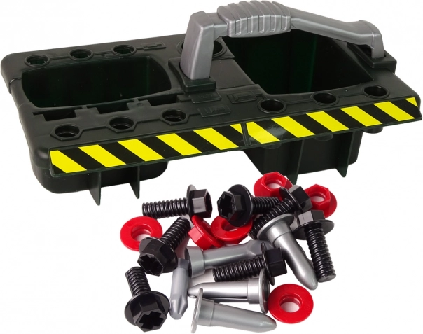 Set uključuje vijke, pile, ključeve i druge igračke koje donose razne mogućnosti igre.