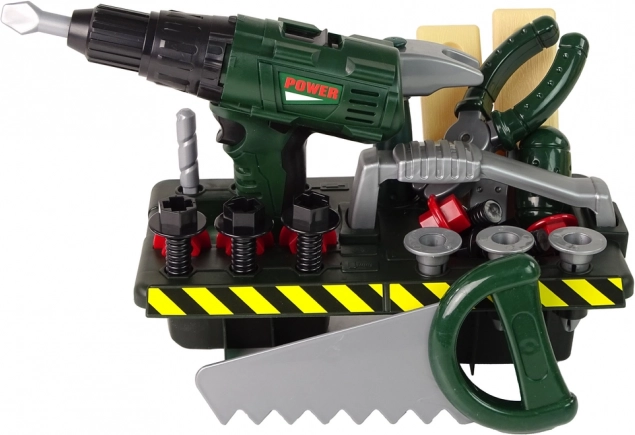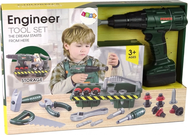 Svi alati izrađeni su od plastike, pa su sigurni za djecu. Bušilica pritiskom na dugme ne samo da okreće nastavke već također proizvodi realističan zvuk.