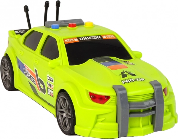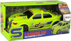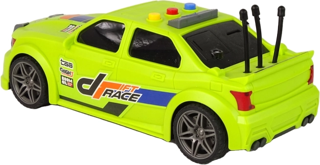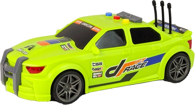 Neon zelena karoserija s atraktivnim naljepnicama „Drift Race“, sportske felge i nizak profil daju autu autentičan trkaći izgled koji će odmah privući djecu.