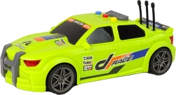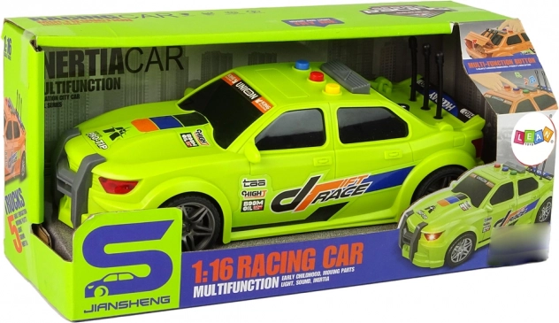 Uđite u svijet brzine i zabave s trkaćim autom u mjerilu 1:16. Pritiskom na gumb reproducira zvuk pokretanja motora i dinamičnu melodiju, dok se pale svjetlosni efekti. Dovoljno je malo ga pogurnuti i zahvaljujući inercijskom pogonu kreće bez potrebe za složenim upravljanjem.
