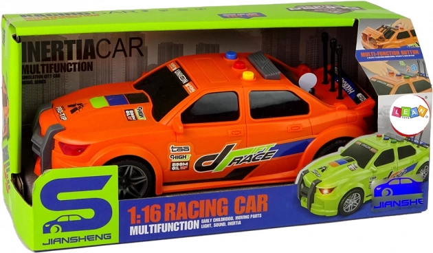 Ovaj stilski trkaći automobil u mjerilu 1:16 donosi djeci radost vožnje i atraktivne efekte. Nakon pritiska tipki čuju se zvukovi pokretanja motora i melodije, popraćeni svjetlima koja pojačavaju atmosferu utrke. Zahvaljujući pogonu na zamašnjak dovoljno je autić pogurnuti i glatko će se pokrenuti.