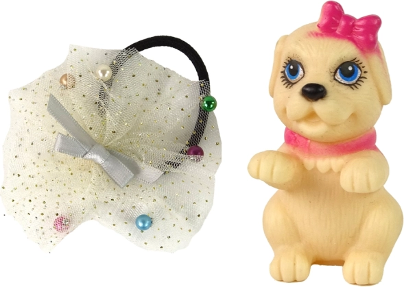 Dio pakiranja je mali bež psić s mašnicom i ukrašena gumica za kosu, koji upotpunjuju igraće scenarije i styling preobrazbe. Set je izvrstan za razvoj fine motorike, igre uloga i pripovjedne igre.