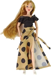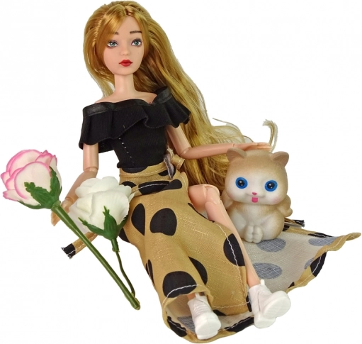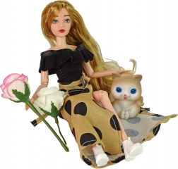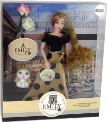 Lutka Emily odjevena je u elegantnu crnu bluzu i dugu bež suknju s točkicama. Ima dugu kosu idealnu za češljanje i izradu frizura, realistično oslikano lice s plavim očima te je u potpunosti pozicionirajuća zahvaljujući zglobovima. U pakiranju se nalaze i slatki mačić te dekorativne ruže koje obogaćuju svakodnevne priče i igru obitelji.