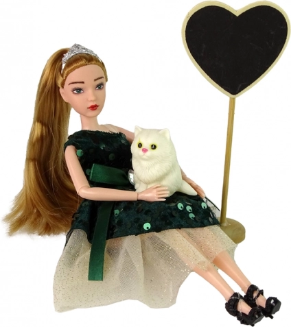 U setu se nalazi bijeli mačić sa zviždaljkom za veselé zvučne efekte i dekorativno drveno srce na postolju, idealno kao kulisa uz “pistu” za igru. Set je izvrstan poklon za male ljubitelje lutaka i mode.