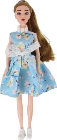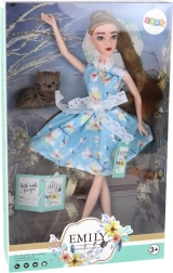 Lutka Emily (30 × 7 × 4 cm) nježna je pratiteljica za maštovitu igru. Ima dugu kosu u nijansama tamne plavuše koju je lako češljati i ukrašavati, zelene oči i suptilan make-up za realističan izgled. Odjevena je u šarmantnu plavu haljinu s cvjetnim uzorkom, čipkom, mašnicom i ovratnikom, koju upotpunjuje mali “dijamantni” detalj na vratu i bijele cipelice.