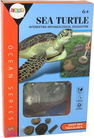 Kompletan edukativni set za ljubitelje podvodnog života i arheologije. Unutar realističnog fosila kornjače dimenzija 14 cm x 11 cm pronaći ćete skrivene iskopine poput amonita.