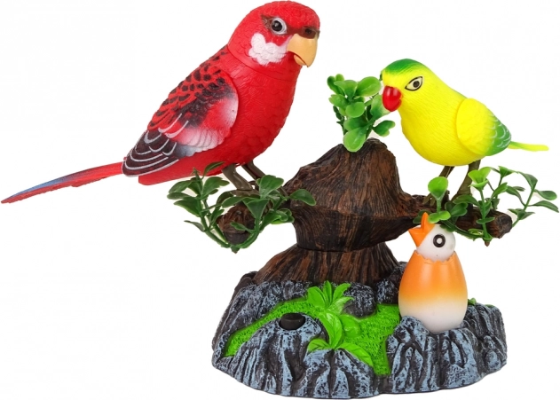U pakiranju pronaći ćete dva papagaja – crvenog i žutog – koji sjede na grani stabla te malo ptiće u ljusci. Ptičice na granama ispuštaju razne zvukove i kreću se, što vam omogućuje da se osjećate kao usred prirode, dok ptiće svijetli šarenim svjetlom. Dovoljno je pritisnuti crnu tipku kako bi se igračka aktivirala.