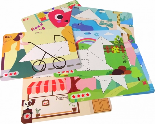 Uključuje i priručnik s prijedlozima oblika i zadacima kako bi igra bila i ugodna i poticajna. Djeca mogu eksperimentirati i učiti otkrivajući nove uzorke, čime potiču sposobnost rješavanja problema i strpljivost.