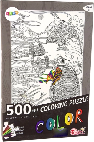 Puzzle za bojanje nude bezbroj kreativnih mogućnosti. Set sadrži 500 crno-bijelih puzzle dijelova i 6 flomastera, kojima možete prilagoditi sliku prema vlastitom ukusu. Puzzle prikazuju ribe u oceanu, okružene biljkama.