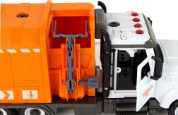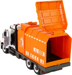Ovaj detaljno izrađen kamion za smeće djeci omogućuje uživljavanje u ulogu radnika na odvozu otpada. Realistični elementi poput otvorivih prednjih i stražnjih vrata, pomičnog podizača za kante i robusnih kotača jamče duge sate zabave. Frikcijski pogon osigurava glatko kretanje po podu bez potrebe za baterijama.