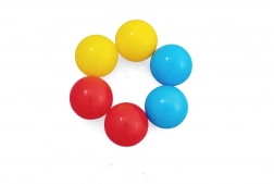 Ovaj set uključuje: šarene napuhane krugove, šarene loptice, napuhan tobogan za loptice i napuhane klinove za dodatnu zabavu.