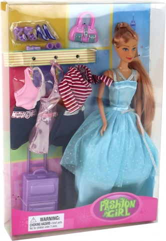Lutka s priborom i putni set idealan je dar za djecu koja vole igrati se lutkama i stvarati raznolike priče. Lutka ima dugu, sjajnu kosu koju je moguće uređivati u različite stilove, što djeci omogućuje da postanu frizeri svojih snova. Osim toga, odjevena je u zapanjujuću plavu balsku haljinu koja je pretvara u pravu princezu i savršena je osnova za bezbroj priča i pustolovina.