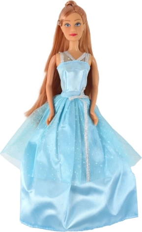 Lutka je odjevena u dugu, sjajnu plavu haljinu s tilskim prekrivačem i nježnim srebrnim detaljima. Idealno za kraljevske pustolovine.
