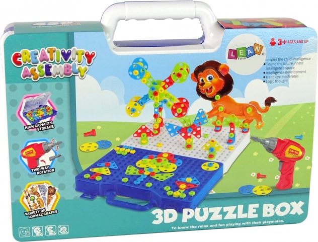 Sastavite vlastite 3D dinosaure s ovim zabavnim DIY konstruktorskim setom. U paketu je praktičan kofer, igračka bušilica, odvijač i šareni vijci. Razvija kreativnost i finu motoriku, pogodno za djecu 3+, udovoljava CE i EN71.