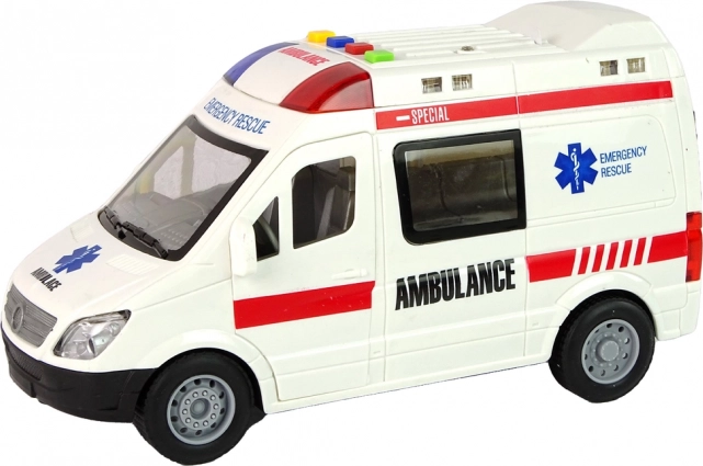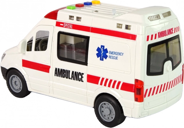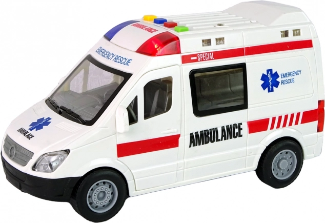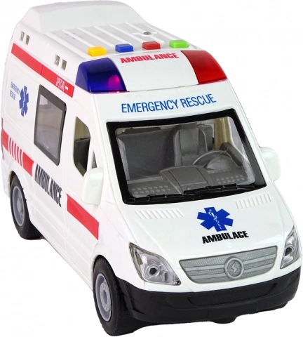 Ova detaljno izrađena igračka hitne pomoći nudi interaktivnu zabavu: 4 šarene tipke pokreću različite zvučne efekte i svjetla, otvarajuća vrata omogućuju pogled u unutrašnjost, a inercijski pogon osigurava brzu vožnju bez baterija za pogon kotača. Zahvaljujući dimenzijama 22 × 8 × 12 cm odlično pristaje dječjoj ruci.