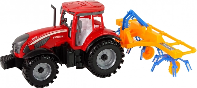 Ovaj detaljno izrađen crveni traktor sa stražnje priključenim grabljačem pretvara svaku dječju igru u farmersku avanturu. Zahvaljujući frikcijskom pogonu traktor se lako pokreće naprijed i natrag, dok se pokretni dijelovi grabljača pri vožnji okreću i oponašaju stvarni rad na polju.