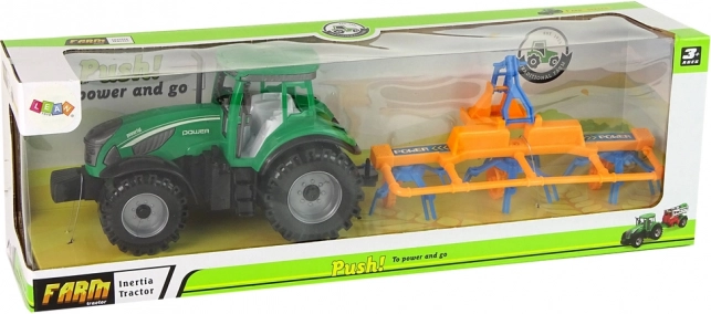 Otkrijte zabavan i edukativan set za male farmere: zeleni traktor s grabljama i trenjnim pogonom za vožnju naprijed i unatrag. Čvrsta plastična konstrukcija, realistična izrada i sigurni materijali oduševit će djecu i roditelje. Dio seta je i odvojive grablje za autentične poljoprivredne igre i razvoj mašte. Prikladno za djecu od 3 godine.