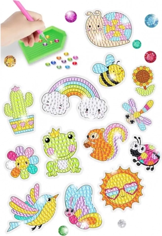 Naljepnice prikazuju životinjice poput vjeverice, žabe, kukaca, cvijeća i šarene duge. Idealno za djecu od 5 godina, savršen poklon!